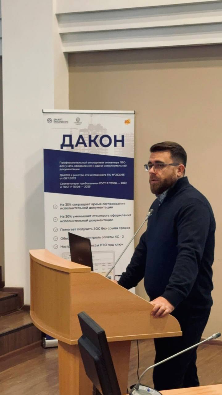 В рамках семинара студенты ознакомились с практикой цифровизации исполнительной документации: нормативным регулированием, требованиями заказчиков, принципами работы с сервисом ДАКОН и инструментами аналитики. В качестве примеров были рассмотрены реальные кейсы строительства промышленных объектов Воронежской области.